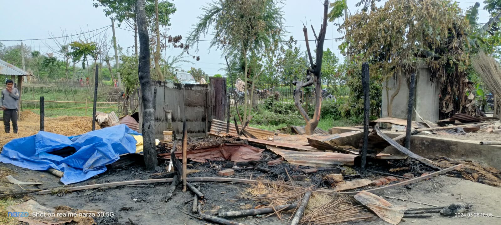 पंसस राजा मंडल ने बताया जिस जगह अगलगी की घटना हुई वहां सैकड़ो की संख्या में कच्चे घर है। ग्रामीणों ने अपनी सूझबूझ से एक बड़ी घटना घटित होने से रोक लिया। हालांकि आगलगी की कारण का पता नहीं चल पाया है। जबकि मेरा चेहरा व हाथ भी झुलस गया।