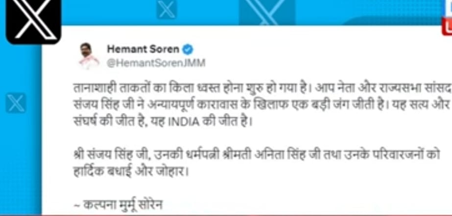 एक्स पर पोस्ट बयान पर सुप्रीम कोर्ट के फैसले पर खुशी जतातीं कल्पना सोरेन