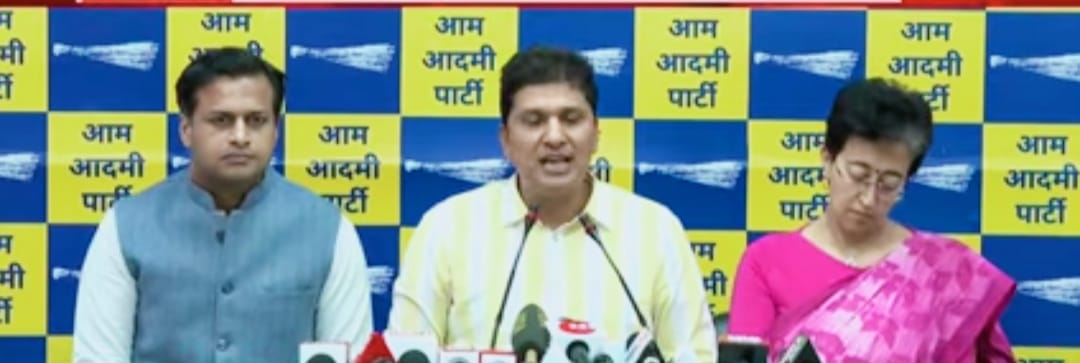 दिल्ली में संजय सिंह की जमानत सुप्रीम कोर्ट में मंजूर होने की जानकारी देते आम आदमी पार्टी के प्रतिनिधि
