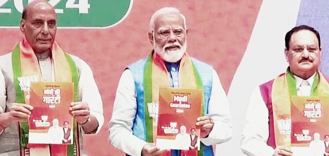 भारतीय जनता पार्टी (बीजेपी) ने 2024 लोकसभा चुनाव के लिए रविवार को दिल्ली के अपने पार्टी मुख्यालय में घोषणापत्र जारी कर दिया।पार्टी ने घोषणापत्र को ‘भाजपा का संकल्प, मोदी की गारंटी’ नाम दिया है।