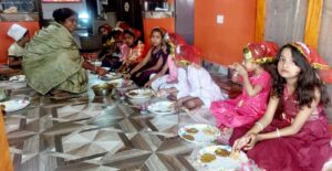 जिसको लेकर भी काफी भीड़भाड़ देखी गई। वही हवन आदि कार्य के उपरांत नवमी के दिन माता के नए मने रूप नौ कन्याओं को भोग लगाया गया नन्ही कन्याओं का पूजन करने के उपरांत भोग लगाया गया और उनके पैर छूकर आशीर्वाद लिए।