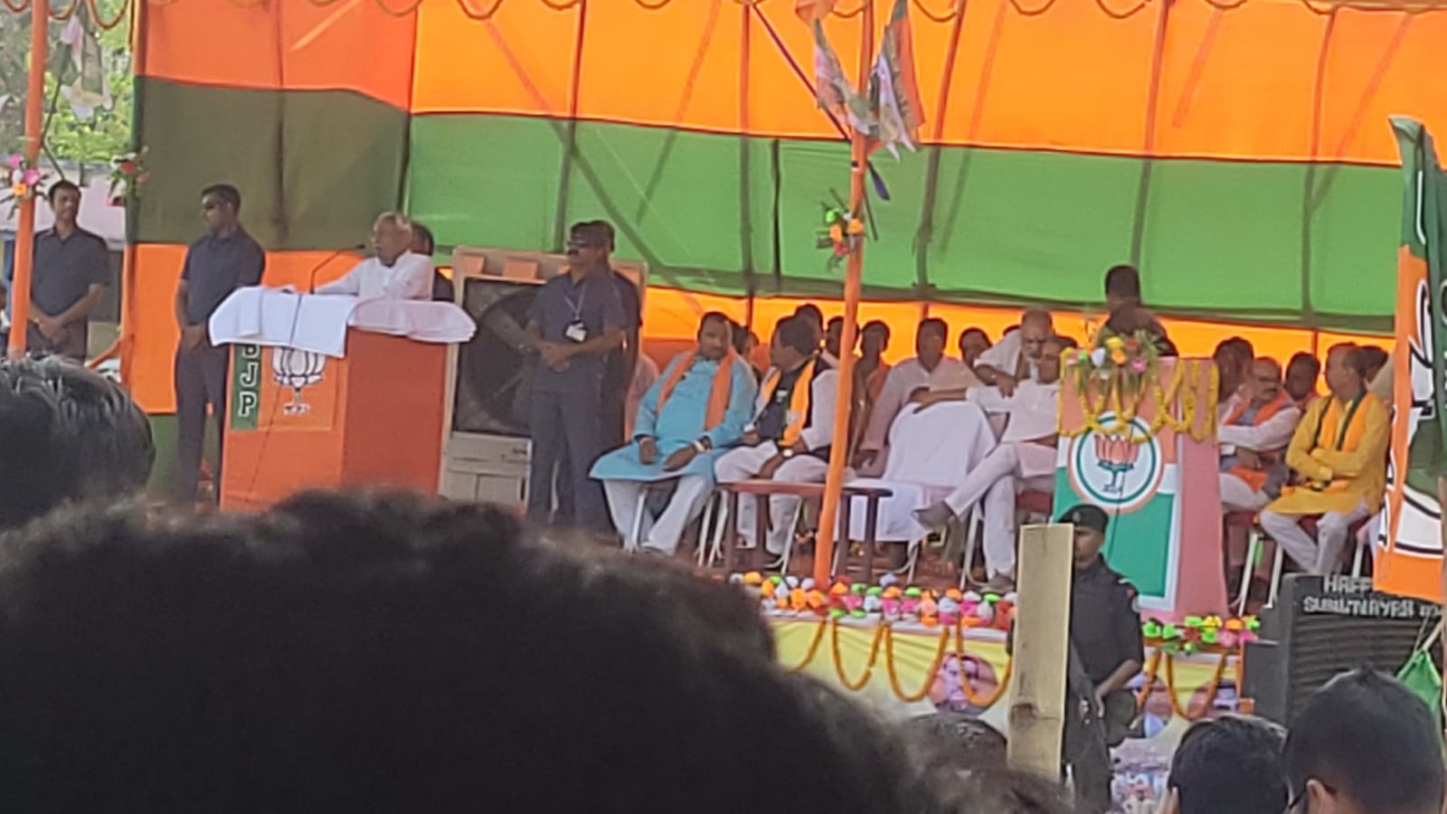 मुख्यमंत्री नीतीश कुमार ने लालू यादव पर जमकर हमला भी बोला. उन्होंने कहा कि खुद जेल गए तो पत्नी को मुख्यमंत्री बना दिया. परिवार को आगे बढ़ाते गए. पहले बेटा,अब बेटी. आगे कौन आएगा पता नहीं । मौके पर लोकसभा प्रत्याशी प्रदीप कुमार सिंह, विधायक जयप्रकाश यादव मंचन केसरी, विजय मंडल,अचमित ऋषिदेव, पूर्व मंत्री साहब बनमनखी विधायक कृष्ण कुमार ऋषि जिला परिषद अध्यक्ष आफताब अज़ीम पप्पू, जदयू जिला अध्यक्ष आशीष पटेल, भाजपा जिला अध्यक्ष आदित्य नारायण झा, लोचपा रामविलास जिला अध्यक्ष रणधीर पासवान, हम पार्टी जिला अध्यक्ष रमेश राम और, पूर्व जिला अध्यक्ष आलोक भगत, पूर्व जिला अध्यक्ष संतोष सुराणा, महिला जिला अध्यक्ष संचिता मंडल, जिला मंत्री सुष्मिता ठाकुर, सुशीला साह, राजकुमार मंडल उर्फ राजू मंडल, रितेश कुमार सरदार, मिथिलेश ऋषि देव,सुमन झा, मंजर आलम आदिल मुख्तार इत्यादि मौजूद थे