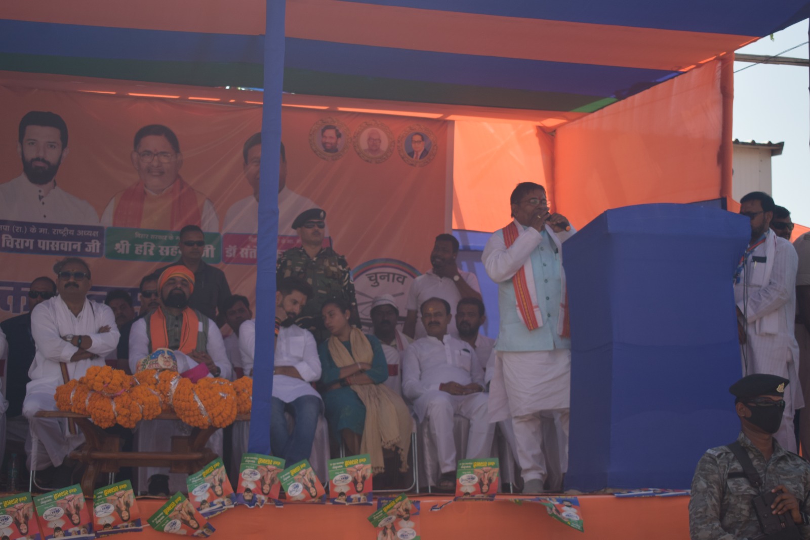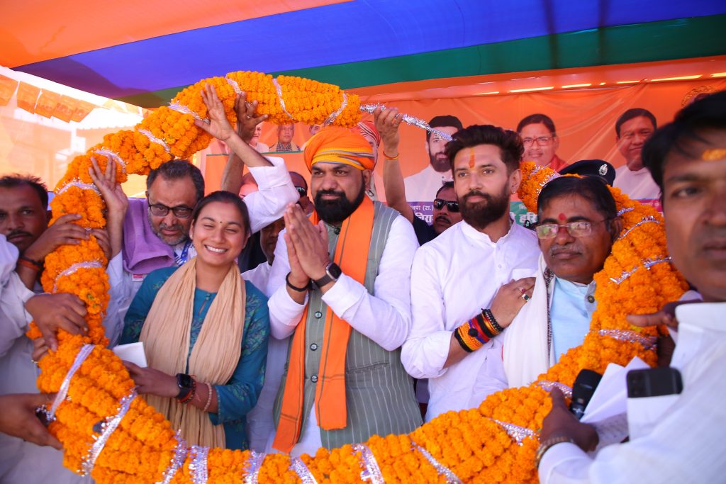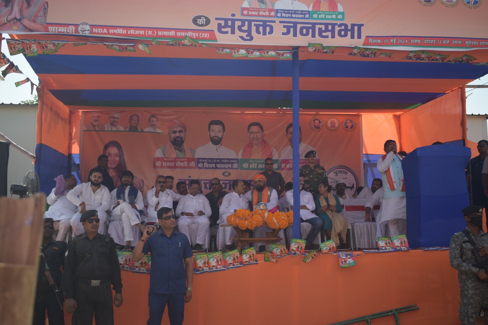 लेकिन चिराग पासवान आपको गारंटी देता है कि दुनिया की कोई ताकत संविधान को बदल नहीं सकती और न ही आरक्षण को कभी खत्म करेगी। उन्होंने कहा की ये वही लोग हैं जो खुलेआम मंच से मेरे माता पिता और परिवार के लोगों को गाली देने का काम किए हैं। बिहार सरकार के मंत्री संतोष कुमार सुमन ने कहा कि समस्तीपुर लोकसभा से शांभवी चुनाव जीतकर जाती है, तो प्रधानमंत्री की परछाई की तरह रहेगी और अपने क्षेत्र में विकास कार्यों को पूरा करेगी। बिहार सरकार के मंत्री हरि सहनी ने कहा कि पूरे देश में गरीबों के एकमात्र नेता नरेंद्र मोदी हैं। इन्होंने गरीबों को रहने के लिए घर और खाने के लिए मुफ्त अनाज दे रही है। आज पूरी दुनिया में भारत का डंका बज रहा है।
