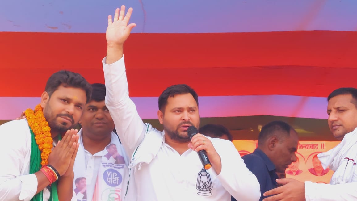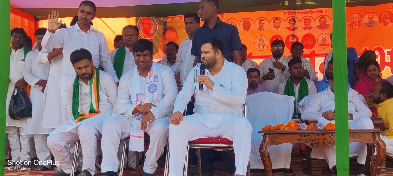 - उच्च विद्यालय कुशेश्वरस्थान के खेल मैदान में शुक्रवार को इंडिया गठबंधन के कांग्रेस उम्मीदवार सन्नी हजारी के समर्थन में आयोजित चुनावी सभा को संबोधित करते हुए नेता प्रतिपक्ष तेजस्वी यादव।