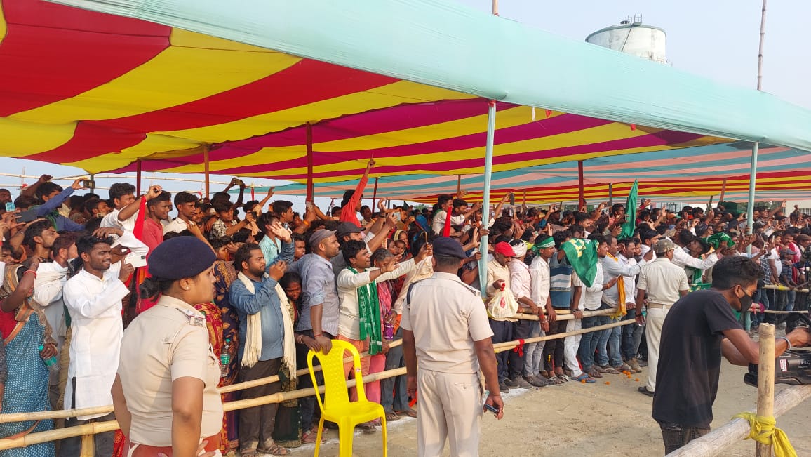 स्वयं सहायता समूह के मानदेय को दुगुना किया। आईआईटी, टूरिज्म, स्पोर्ट्स पोलीस बनाई। एमओयू निवेशकों को बुलाकर 50 हजार करोड़ का एग्रीमेंट कराया। जिससे बिहार में निवेश आया। लेकिन इसी बीच चाचा जी पलट गए। वो बुजुर्ग हैं, कहीं भी रहे,हमारा पूरा सम्मान है। उन्होंने कहा कि हमारी सरकार बनेगी तो एक करोड़ लोगों को नौकरी देंगे। महिलाओं को प्रत्येक साल एक लाख रुपए देंगे। फ्री में बिजली दिया जाएगा। यहां धनबल का मुकाबला जनबल से हो रहा है।