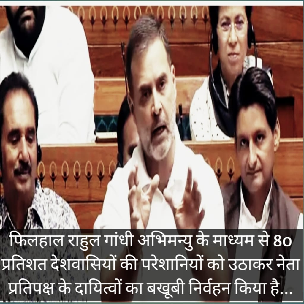 “राहुल गांधी जी को बार-बार याद दिलाया गया है कि जो भी आप बात करें नियमों से करें. लेकिन नियम को ताक पर रखकर अनाप शनाप बातें की हैं। सदन, संविधान और देश से ऊपर कोई नहीं हो सकता है. राहुल गांधी जी ने अपने पद की गरिमा का ख़याल भी नहीं रखा है। फिलहाल राहुल गांधी अभिमन्यु के माध्यम से 80 प्रतिशत देशवासियों की परेशानियों को उठाकर नेता प्रतिपक्ष के दायित्वों का बखूबी निर्वहन किया है।