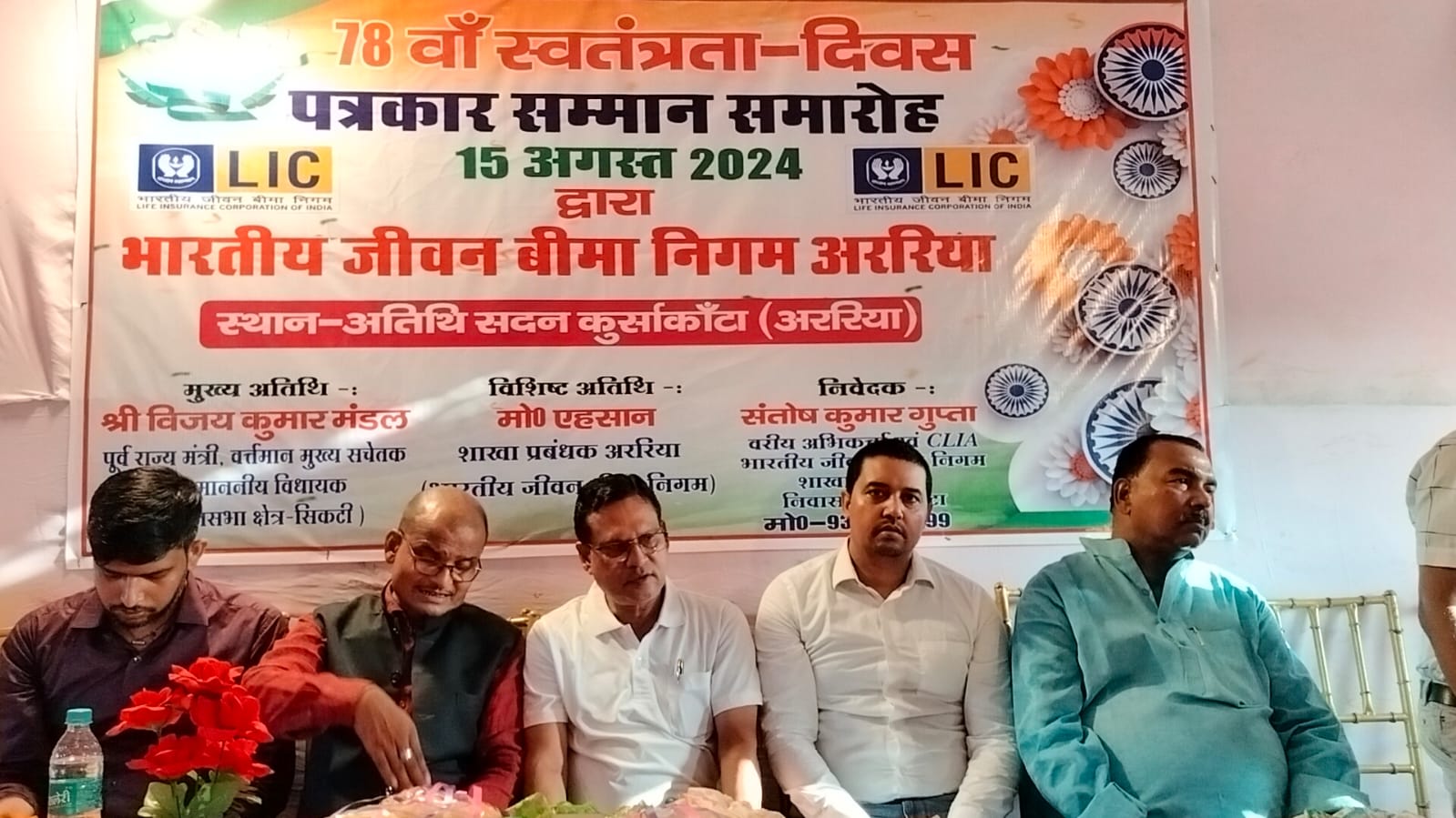 भारतीय जीवन बीमा निगम (LIC)की तरफ से 78 वां स्वतंत्रता दिवस के अवसर पर पत्रकार सम्मान समारोह आयोजित किया गया. यह समारोह कुर्साकांटा प्रखंड के अतिथि सदन धर्मशाला में शाम 4 बजे के करीब मुख्य अतिथियों के द्वारा दीप प्रज्वलित कर शुरू किया.