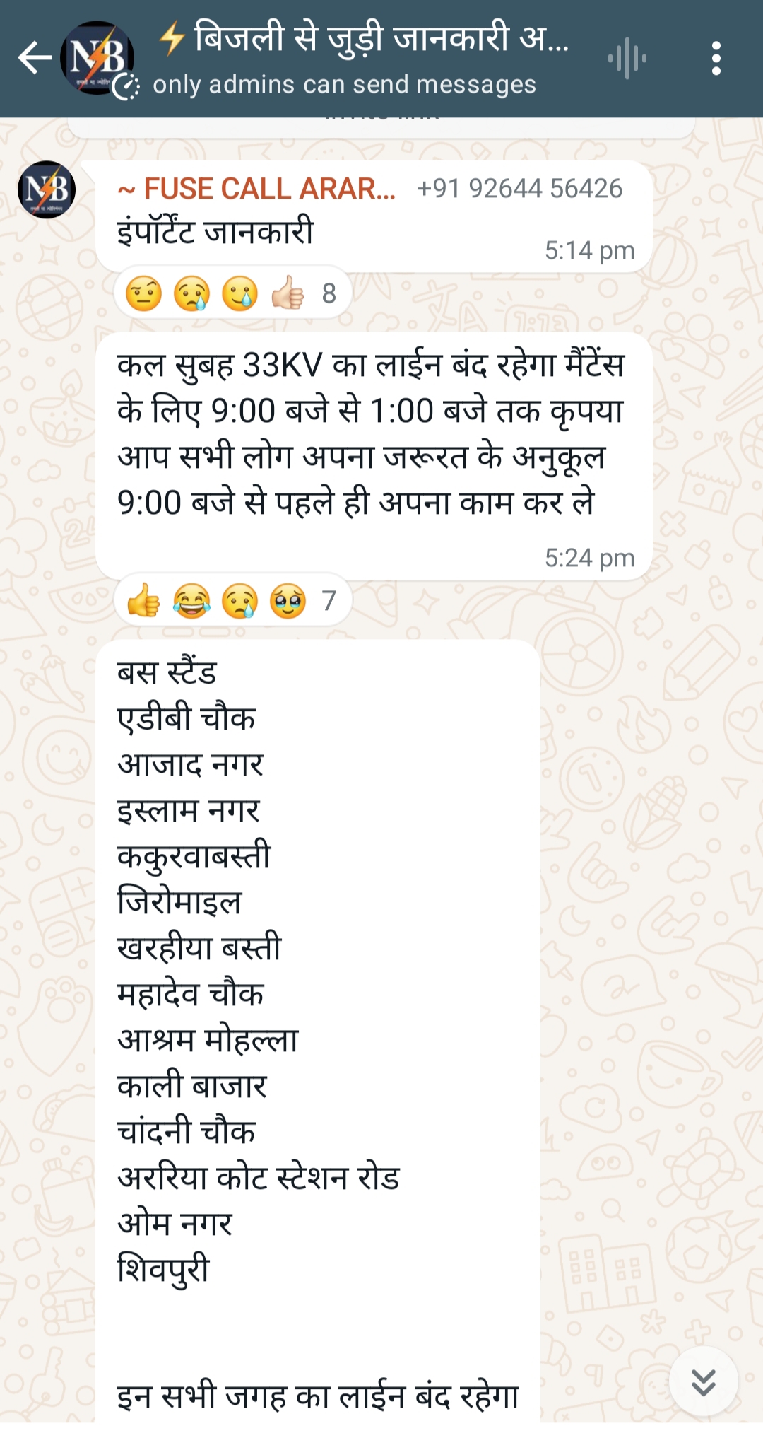 – *कारण:* मेंटेनेंस कार्य के चलते विद्युत आपूर्ति बाधित रहेगी।