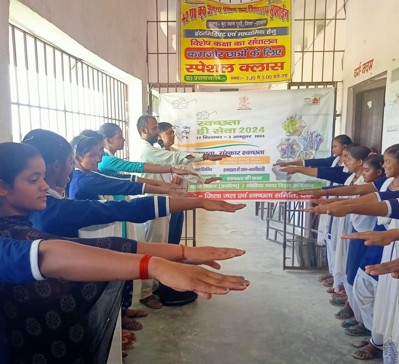 उन्होंने छात्र एवं छात्राओं से सरकार के इस महत्वाकांक्षी योजना को सफल बनाने के लिए अपने परिजनों,सगे संबंधियों तथा आसपास के लोगों को इसके लिए प्रेरित करने का अपील किया। कहा कि स्वच्छता में भगवान का निवास होता है। स्वच्छ वातावरण में रहने से शरीर स्वस्थ रहता है। मौके पर विद्यालय के प्रधानाध्यापक सहित सभी शिक्षक एवं छात्र छात्राएं उपस्थित थे।