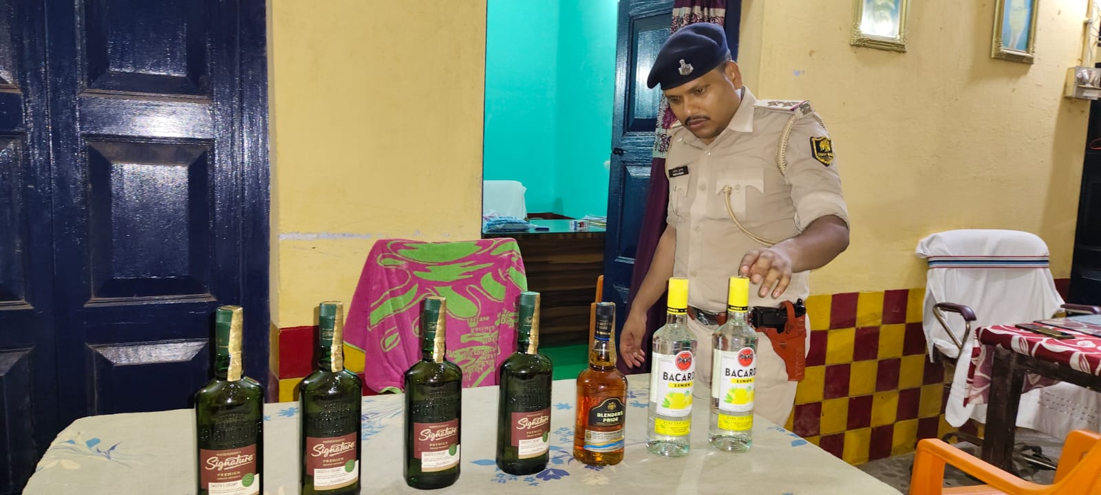 - मदन भगत के पास से 5.25 लीटर अंग्रेज़ी शराब बरामद हुई।