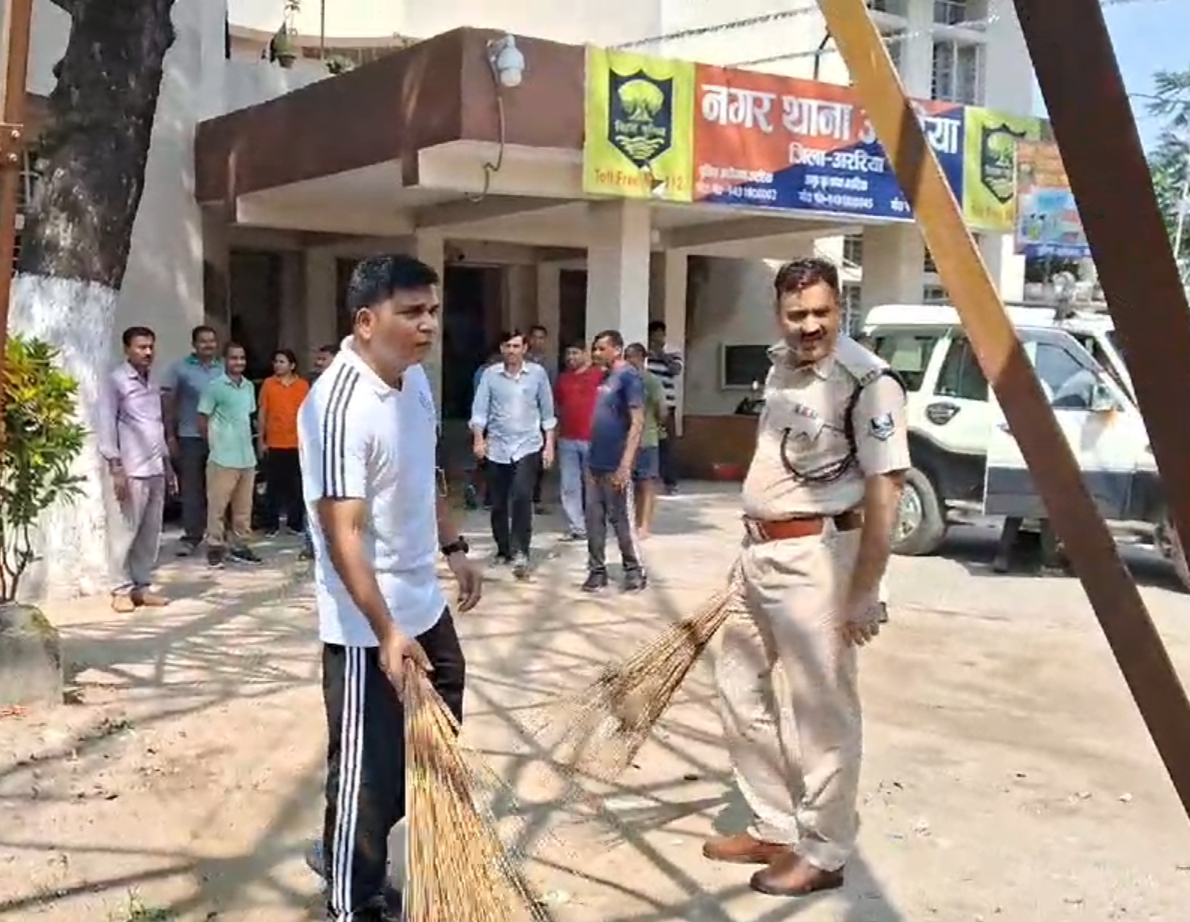 – नगर थाना अररिया में एसपी अमित कुमार और एएसपी रामपुकार सिंह ने स्वच्छता अभियान में भाग लिया।