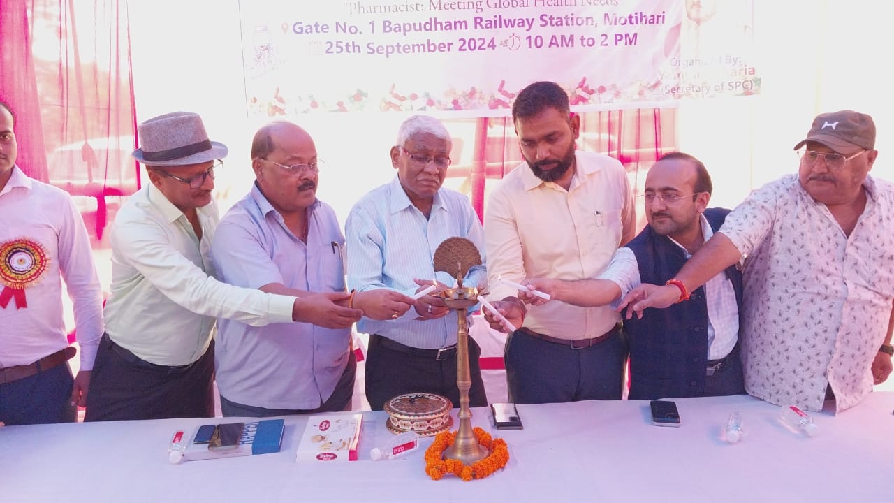 नजरिया न्यूज़ मोतिहारी, 25 सितंबर। शहर के बापूधाम मोतिहारी रेलवे स्टेशन परिसर में “वर्ल्ड फार्मासिस्ट डे” के अवसर पर नि:शुल्क स्वास्थ्य शिविर का आयोजन किया गया। सीकारिया फार्मेसी कॉलेज के सभी शिक्षक और छात्रों के द्वारा लोगों के स्वास्थ्य की जांच की गई। कार्यक्रम का उद्घाटन सिविल सर्जन डॉ विनोद कुमार सिंह एवं अपर मुख्य चिकित्सा पदाधिकारी डॉ श्रवण कुमार पासवान, नगर आयुक्त नगर निगम मोतिहारी सौरव सुमन, कॉलेज के सचिव यमुना सिकरिया तथा स्टेशन अधीक्षक दिलीप कुमार ने संयुक्त रूप से किया। सिविल सर्जन ने कहा कि हर साल 25 सितंबर को वर्ल्ड फार्मासिस्ट डे मनाया जाता है।