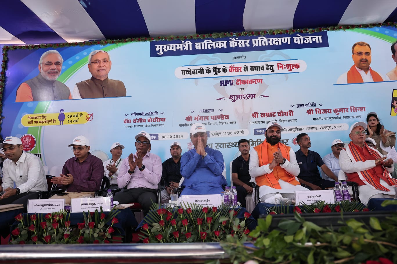 राज्य के स्वास्थ्य मंत्री श्री मंगल पांडेय की अध्यक्षता में सर्वाइकल कैंसर से बचाव के लिए मुख्यमंत्री बालिका कैंसर प्रतिरक्षण योजना की विधिवत शुरुआत हो गई। इस दौरान 9 से 14 साल की बच्चियों को ह्यूमन पेपिलोमा वायरस (एचपीवी) टीका लगाया गया। कार्यक्रम के दौरान बिहार सरकार के दोनों डिप्टी सीएम श्री सम्राट चौधरी व श्री विजय सिन्हा भी मौजूद रहे।