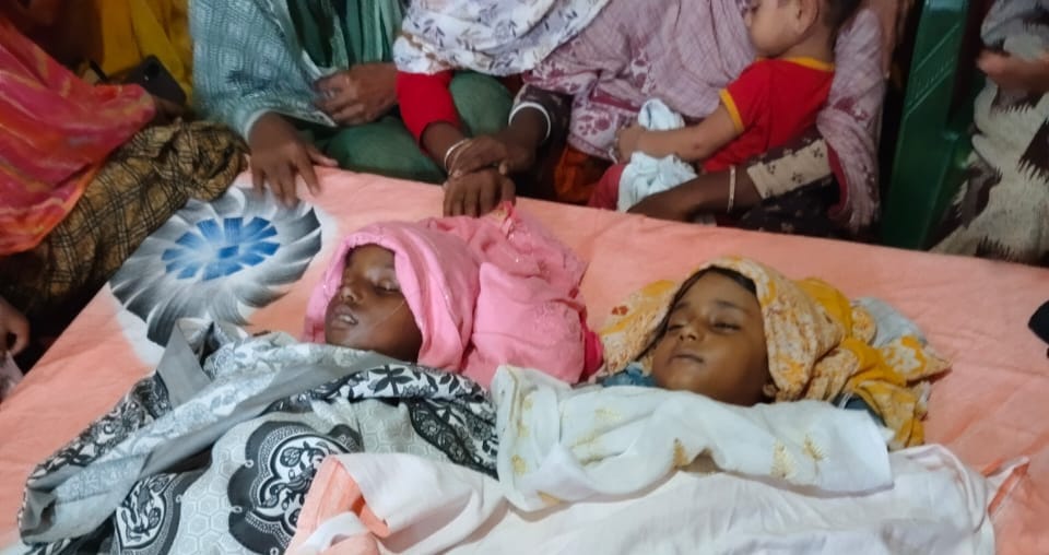 अस्पताल ले जाने को कहा। परन्तु अस्पताल पहुंचते ही आफिया ने दम तोड़ दिया। वहीं घर पहूँचते ही थोड़ी देर में दूसरी बेटी भी चिल्लाने लगी पिता आलमगीर तुरंत उसे भी अनुमंडलीय अस्पताल ले आए जहां प्राथमिक उपचार के बाद डॉक्टर ने उसे कटिहार रेफर कर दिया था। वहीं एंबुलेंस से कटिहार जाने के क्रम में सालमारी के पास अफसाना खातून ने भी दमतोड़ दिया। वहीं दोनों बेटियों को खो देने के बाद बाप के सब्र का बांध टूट गया और वह फूट-फूट कर रोने लगा। वहीं दूसरी बेटी की मृत्यु की सूचना पाते ही परिवार में हाहाकार मच गया। वहीं पिता आलमगीर ने रोते हुए बताया की दोनों बेटी को नहीं बचा पाए। रात में दोनों बेटी को खाना खिलाकर सुलाया था लगभग साढ़े 12 बजे रात में छोटी बेटी आफिया खातून अचानक चिल्लाने लगी तुरंत उसे अस्पताल लाया गया जहां उसने अंतिम सांस ली। वहीं घर पहुंचते ही दूसरी बेटी भी उसी तरह चिल्लाने लगी। उसे तुरंत अस्पताल ले जाया गया जहां चिकित्सक द्वारा प्राथमिक उपचार के बाद उसे रेफर कर दिया गया परन्तु सालमारी के पास पहुंचते ही दूसरी बेटी भी हमलोगों को छोड़कर चली गई। वहीं घटना की सूचना मिलते ही अनुमंडल पदाधिकारी दीक्षित श्वेताम ने तुरंत संज्ञान लेते हुए अंचल पदाधिकारी को घटनास्थल पहूँचने को कहा।