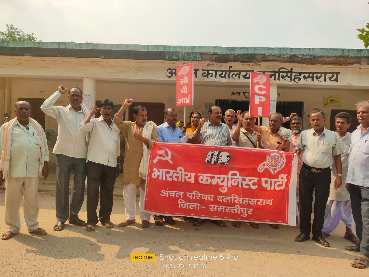 भारतीय कम्युनिस्ट पार्टी अंचल परिषद् के अंचल मंत्री कॉ विनोद कुमार समीर के नेतृत्व में मंगलवार को 12 सूत्री मांगों को लेकर अंचल कार्यालय परिसर पर घरना कार्यक्रम का आयोजन किया गया। साथ ही एक प्रतिनिधि मंडल ने अंचलाधिकारी से मिलकर 12 सूत्री मांग पत्र का ज्ञापन सौंपा। मांग पत्र के ज्ञापन में प्रमुख मांग बिजली के प्रिपेड स्मार्ट मीटर के सिस्टम को समाप्त किया जाये, सभी बिजली उपभोक्ताओ को 300 यूनिट बिजली मुफ्त दिया जाये, विशेष भूमि सर्वेक्षण को स्थगित की जाये और सर्वे काम को सुगम बनाया जाये, बासविहिन लोगो को वास हेतु 5 डिस जमीन दी जाये एवं दाखिल ख़ारिज के मामले को शीघ्र निष्पादन करने सहित अन्य मांगें शामिल है।